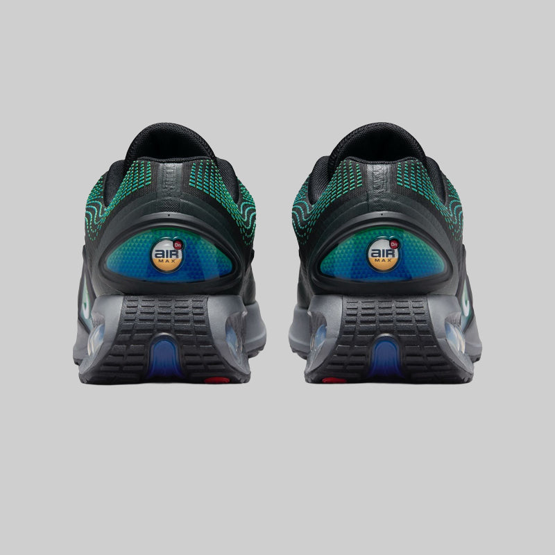 Elevate your rotation with the striking Nike Air Max Dn in a "Teal Green" and Black colorway. This pair features the cutting-edge Dynamic Air unit system, utilizing dual-pressure tubes that react to your stride for a high-energy feel. The haptic-print mesh upper is accented with a deep teal gradient that pops against the sleek grey midsole, offering a modern, technical aesthetic. Whether for performance or daily wear, the Dn provides a seamless transition from the gym to the street with futuristic comfort.